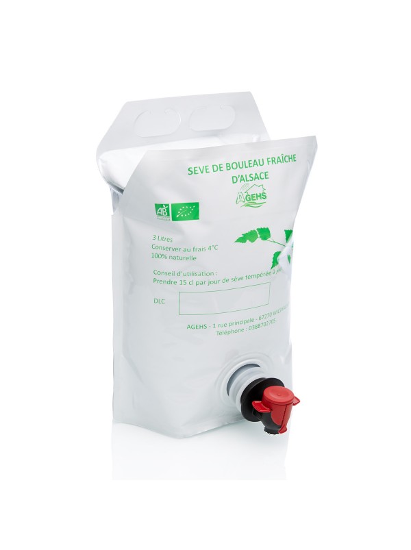 Sève de bouleau fraîche Bio d'Alsace France - cubi de 3L